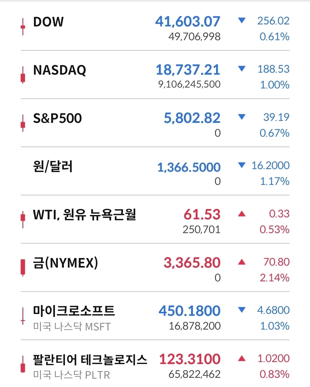 원달러는 하락 흐름 중