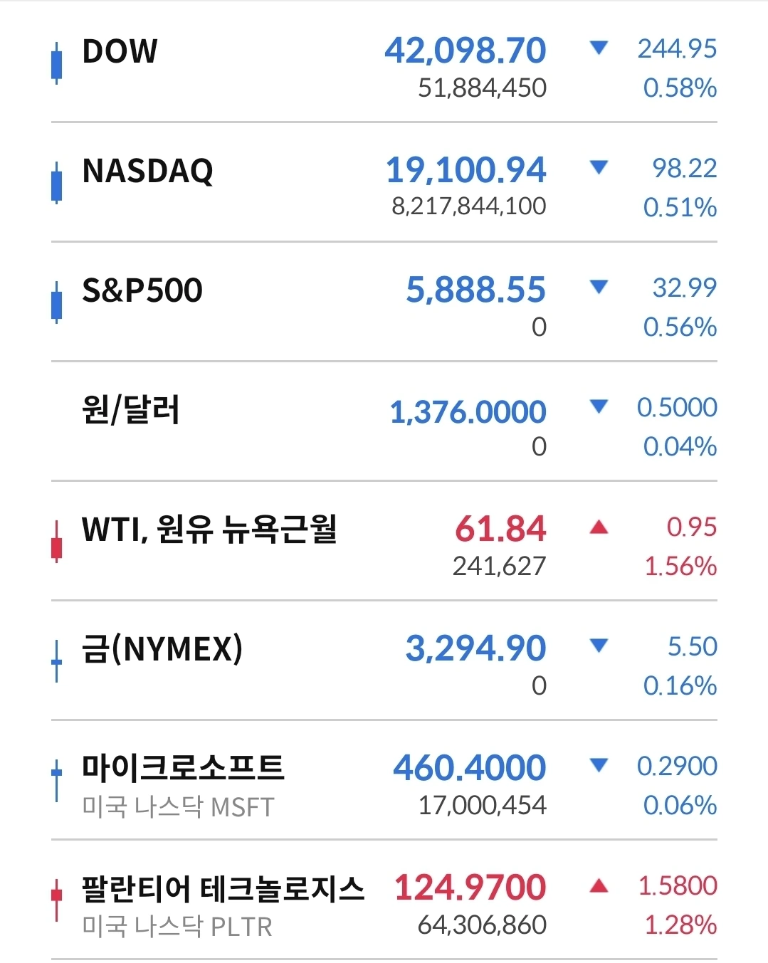 어제 뉴욕증시는 파란색