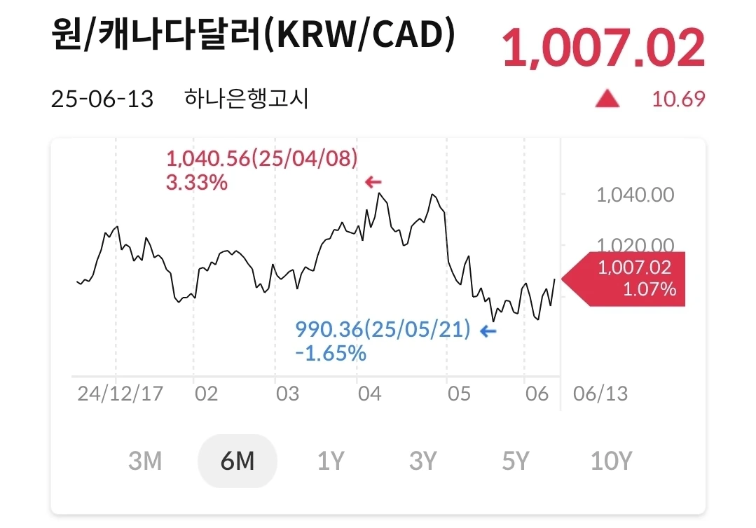 900원대에서 다시 1000원을 넘었다. 중동 리스크가 어느 방향으로 가는지 지켜 보자.