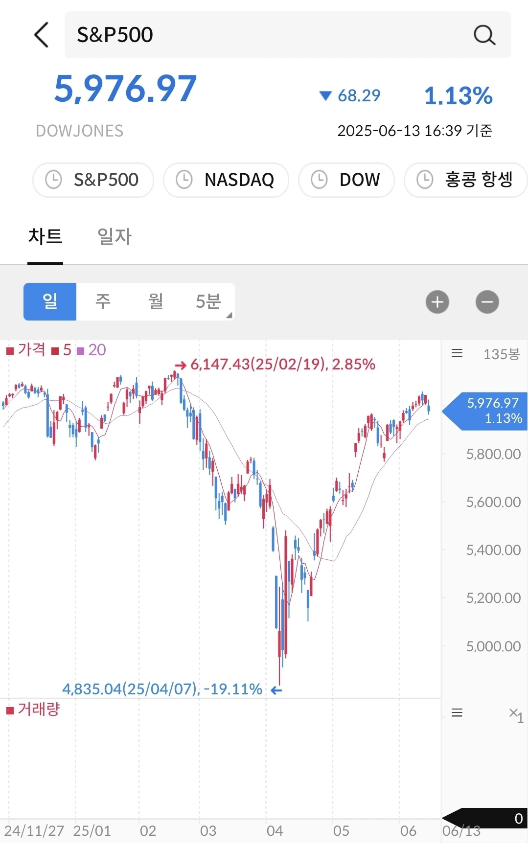 거의 전고점만큼 회복이 되었다. 이스라엘과 이란의 전쟁 여부에 따라서 방향이 결정될 것으로 생각된다. 지켜보자.