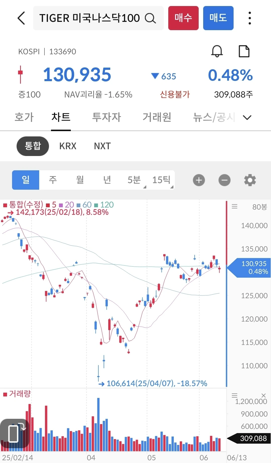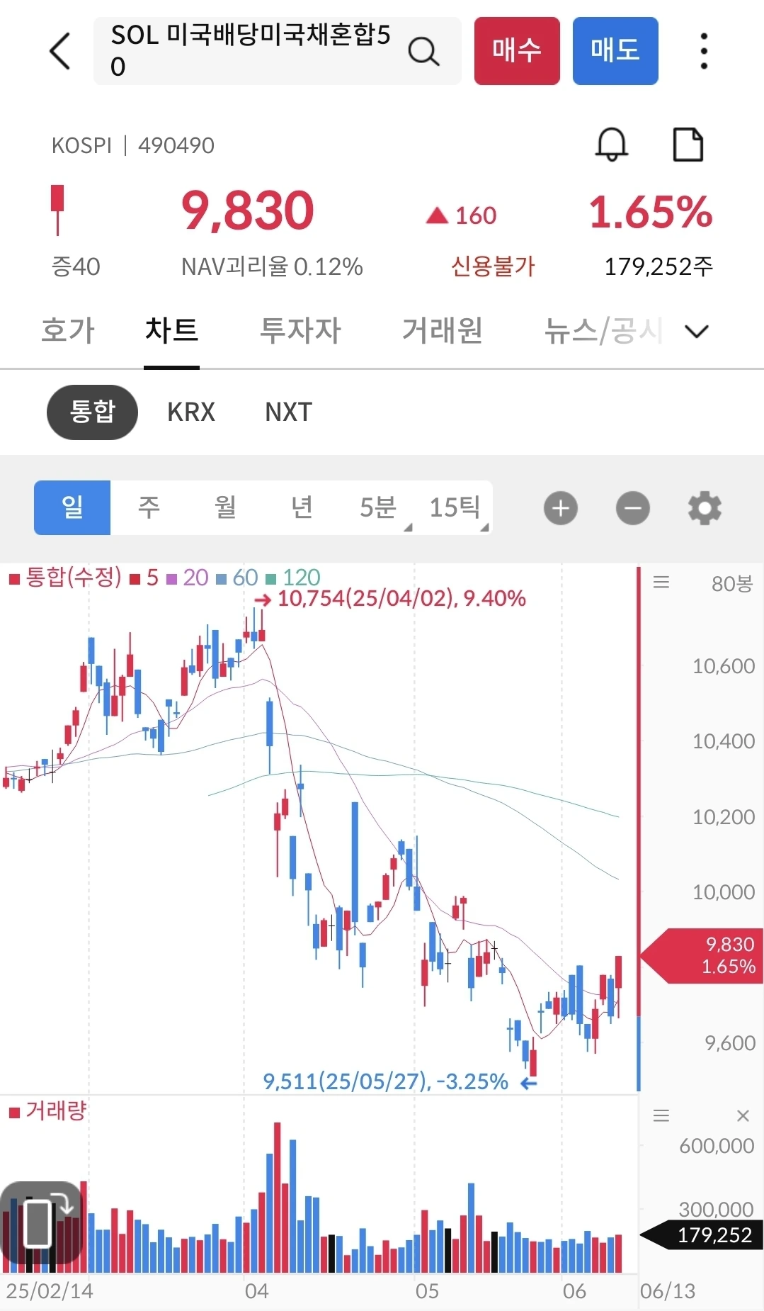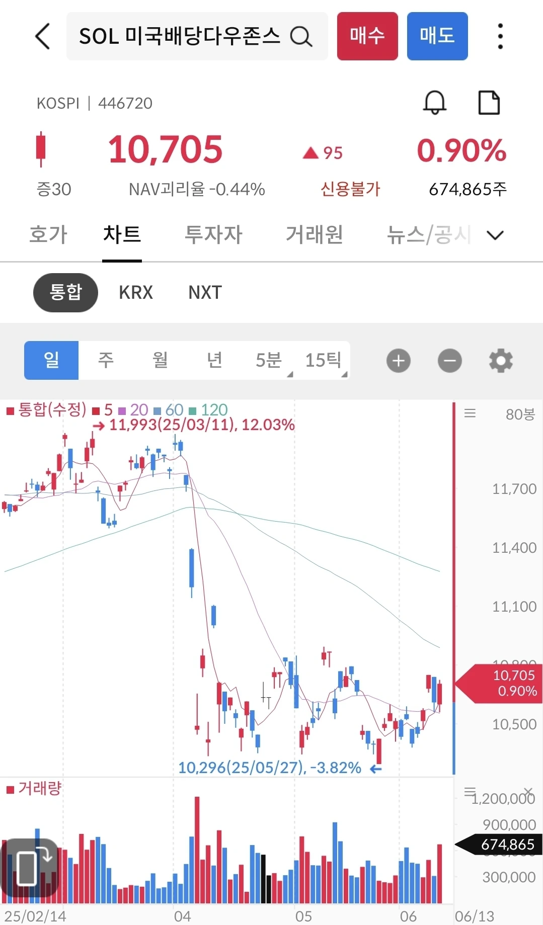 지난 해 9월에 만원으로 상장한 상품이 9500원대까지 떨어졌다가 만원 아래에서 등락을 반복 중이다. 미국채가 가격이 많이 떨어졌기 때문이다. 미국채는 아직도 안전자산이라고 생각하고 있고, 앞으로도 안전자산이다. 일단 지켜 보자.