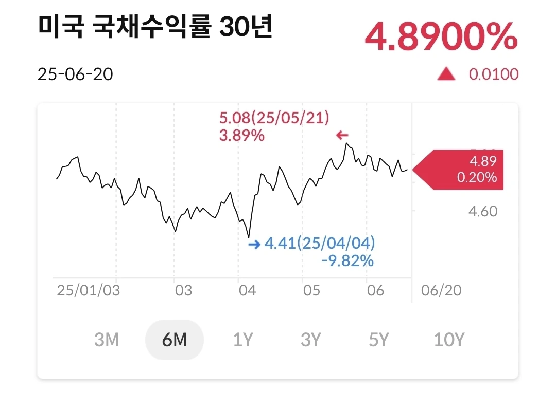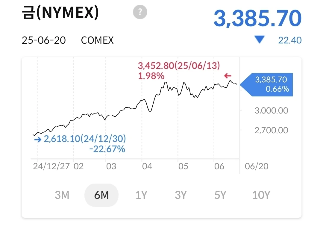 트럼프의 결정이 우리의 투자 방향에는 어떤 영향을 줄 것인가? 단순하게 생각을 하면 유가는 더 오를 것이고, 그에 따른 인플레이션 우려로 연준은 관세전쟁에도 버티던 금리인하를 할 수 밖에 없는 상황이 올 것이다. 금리인하가 되면 미국채가 상승할 것이고, 달러가치가 하락할 것이다. 낮아지는 금리는 돈이 좀 더 안전한 쪽으로 몰리는 현상을 만들 것이다. 결국 금가격도 올라갈 것 같다.