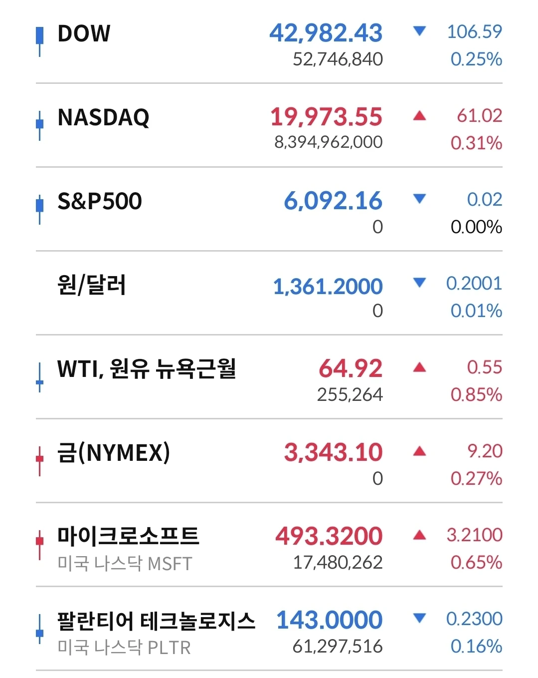 달러인덱스는 전날비 0.25% 내린 97.440