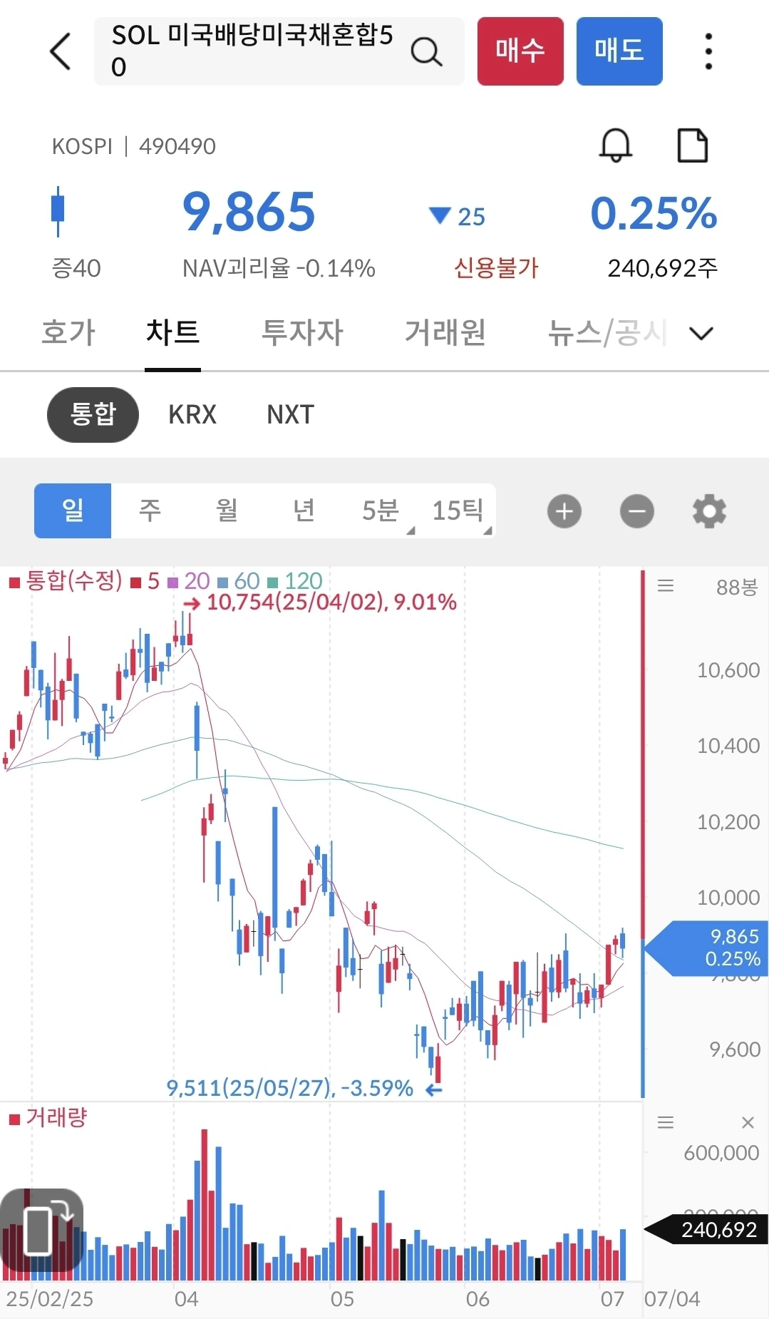 IRP 안전자산 30% 룰을 맞추기 위해서 모아가는 상품이다. 다행이도 요즘에 많이 떨어져서 갯수 모으기에 좋은 상품이라 생각하고 꾸준히 모으고 있다. 언젠가는 효자 상품이 될 것이라는 믿음이 있다.
