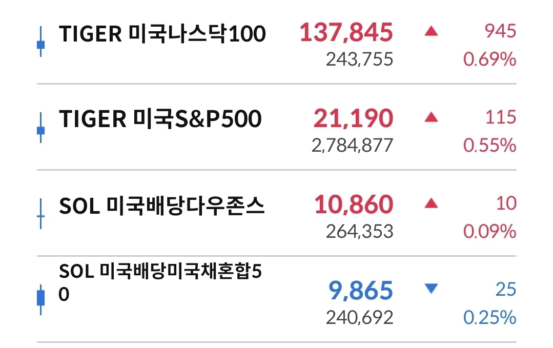 나스닥과 S&P500의 상승 덕분에 플러스 수익으로 바뀌었다. 기다리면서 꾸준히 분할매수하면 우상향으로 수익이 나게 된다. 시장에 돈은 풀리고 결국 그 돈들이 주가를 부양하게 된다. 돈이 몰리면 수익은 나게 된다. 좀 지켜 보자