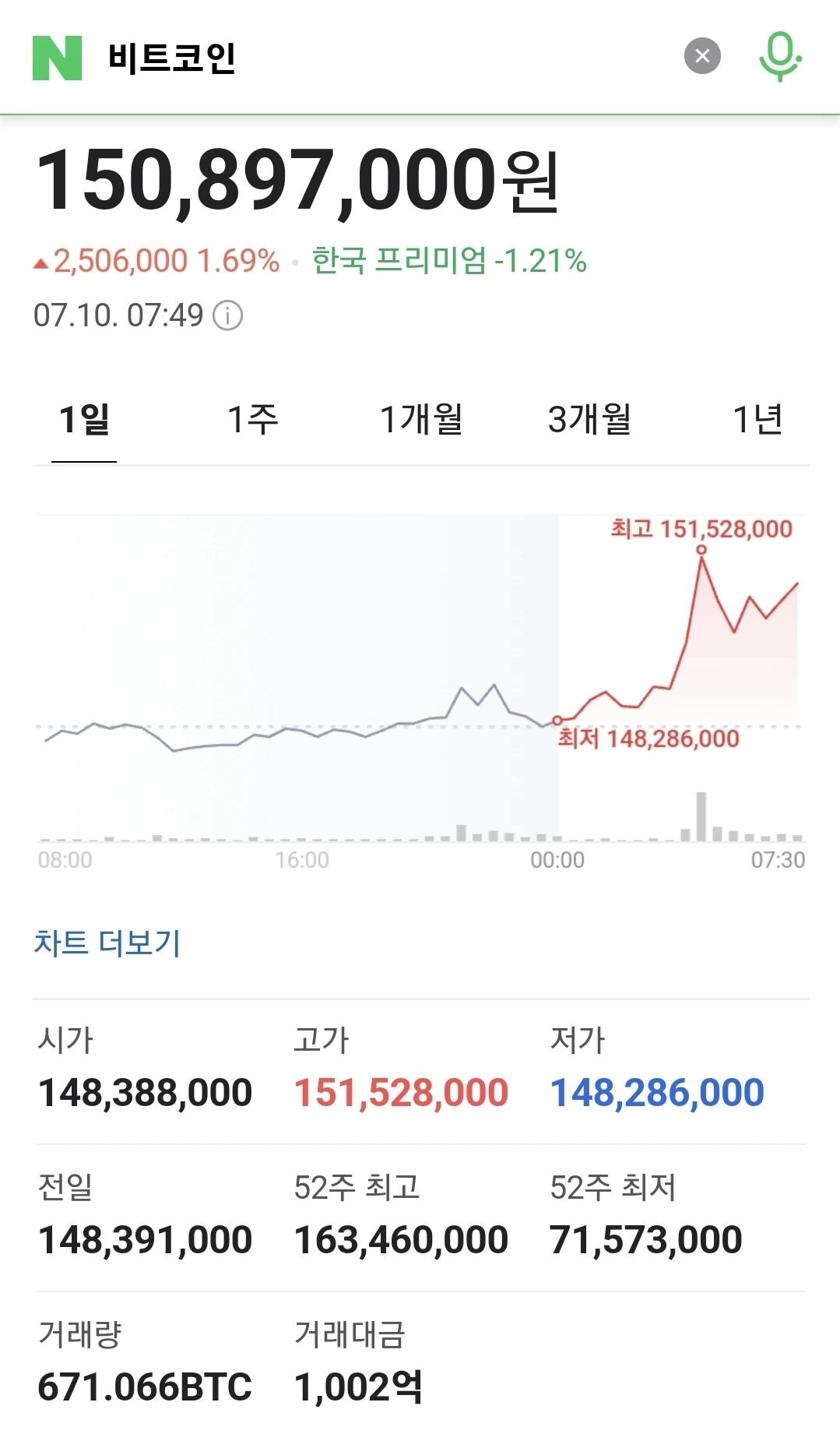 1) 1.91% 오른 1억5106만원