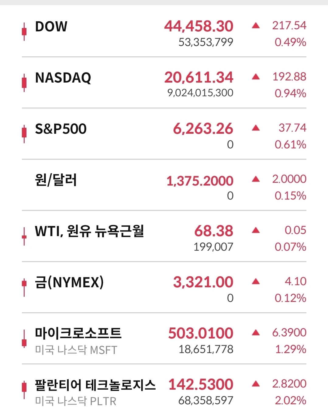 지난 밤 모든 것이 다 올랐다