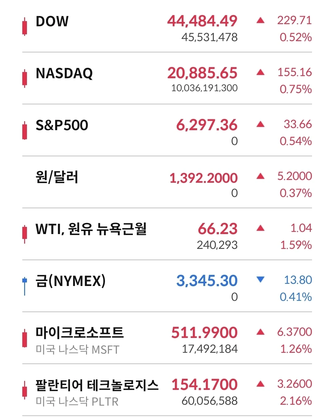요즘은 미증시가 계속 상승 중이고