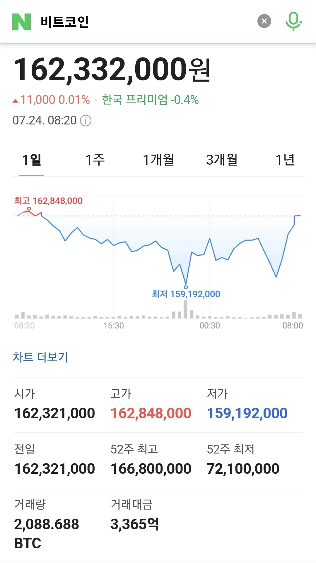 최근 3거래일간의 가격 하락세는 다소 진정