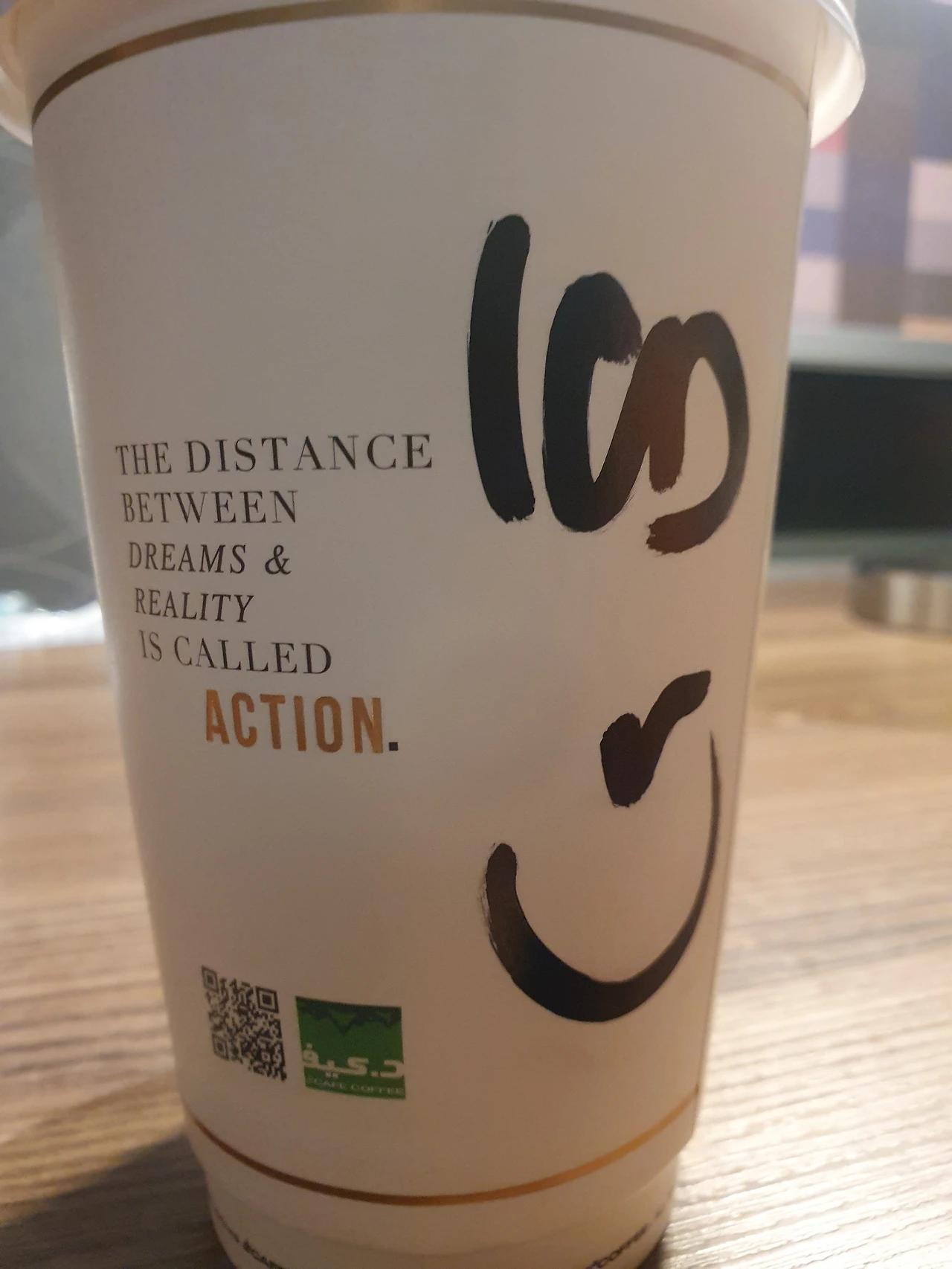 회사 동료들과 저녁을 먹고 숙소로 돌아 오는 길에 나를 픽업해 준 친구가 양고기를 먹고 난 후에는 꼭 아이스커피를 마셔야 한다며 드라이브쓰루에 가서 커피를 샀다. 리야드에는 다양한 카페가 있었고, 그 중에서 "Cafe Coffee" 였다. 인도 사람이나 사우디에서 태어 났다고 하는데, 인도 사람이 맞다.
