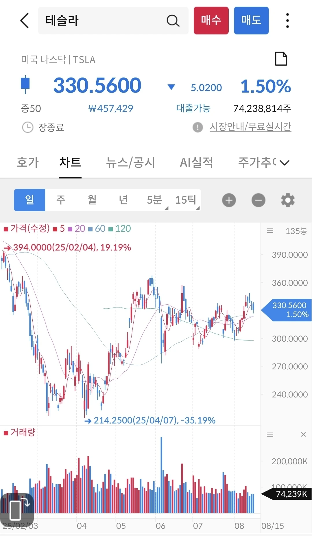 오너 리스크로 등락을 반복 중이다. 호재가 나와서 머스크에 묻히는 상황이다. 당분간 지켜 봐야 한다. 어느 방향으로 움직일지 예상이 쉽지 않다.