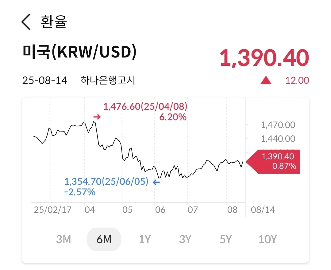 1400원대에 근접해간다. 완만하지만 상승 중이다. 다시 1470원이 될런지는 모르겠지만, 트럼프가 달러 약세 방향으로 정책을 운영하면 1400원대에 머물 가능성이 높다. 환율은 다양한 가능성들이 반영되기에 사실 어떻게 될런지는 알 수가 없다. 추세상으로 완만한 우상향 중이다.
