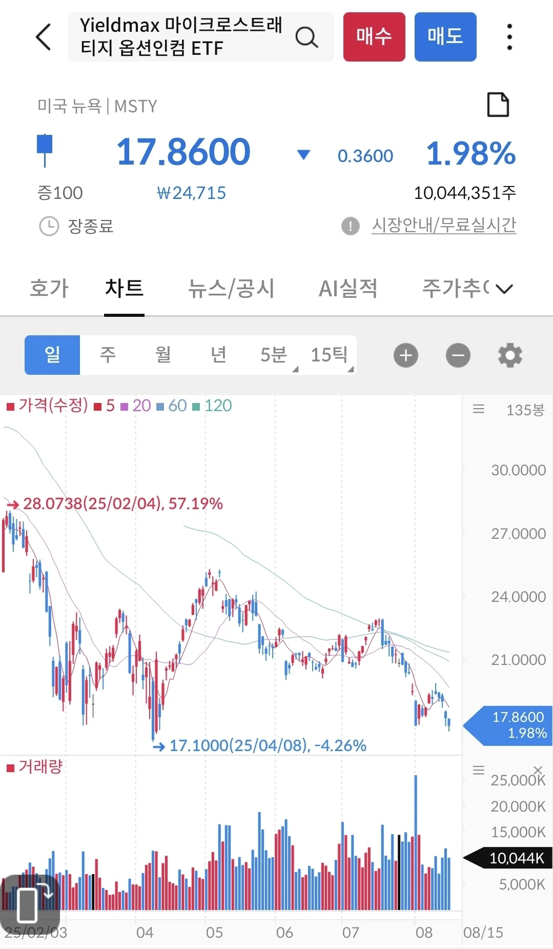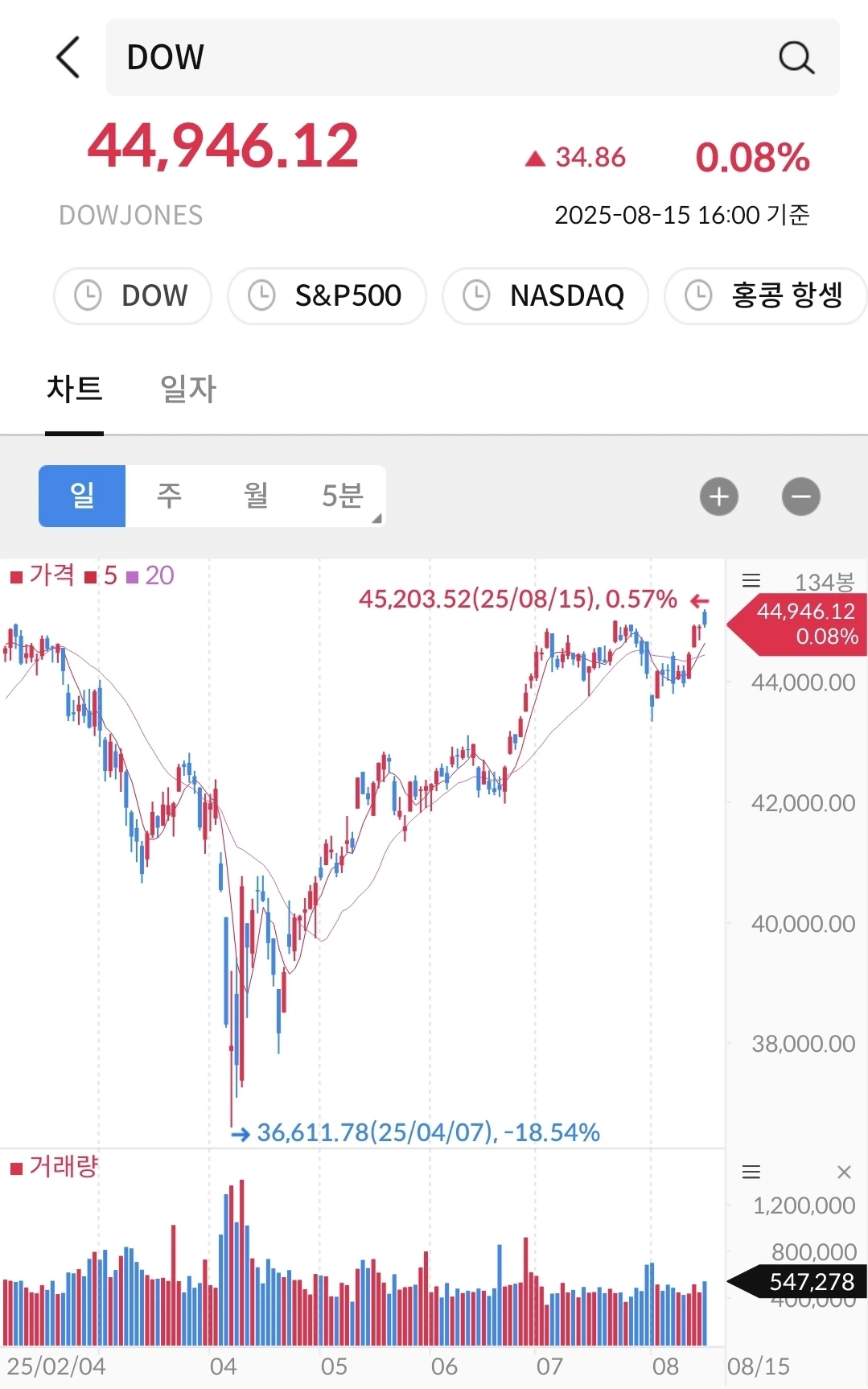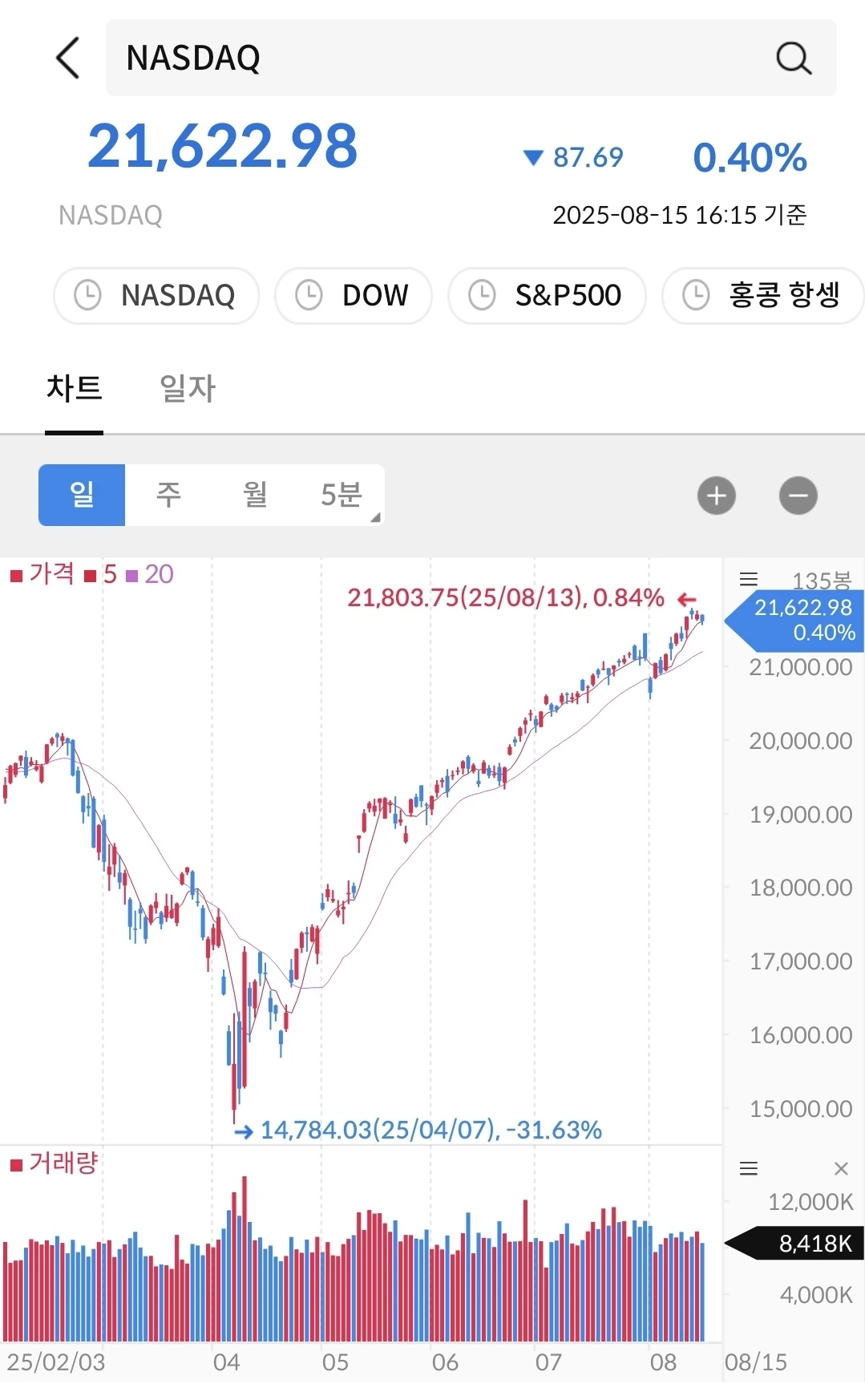 나스닥과 같이 우상향을 하고 있지만 등락을 반복하면서 우상향 중이다. 완만한 우상향이다.지난 4월 관세 발표 이후로 꾸준히 오르는 중이다.