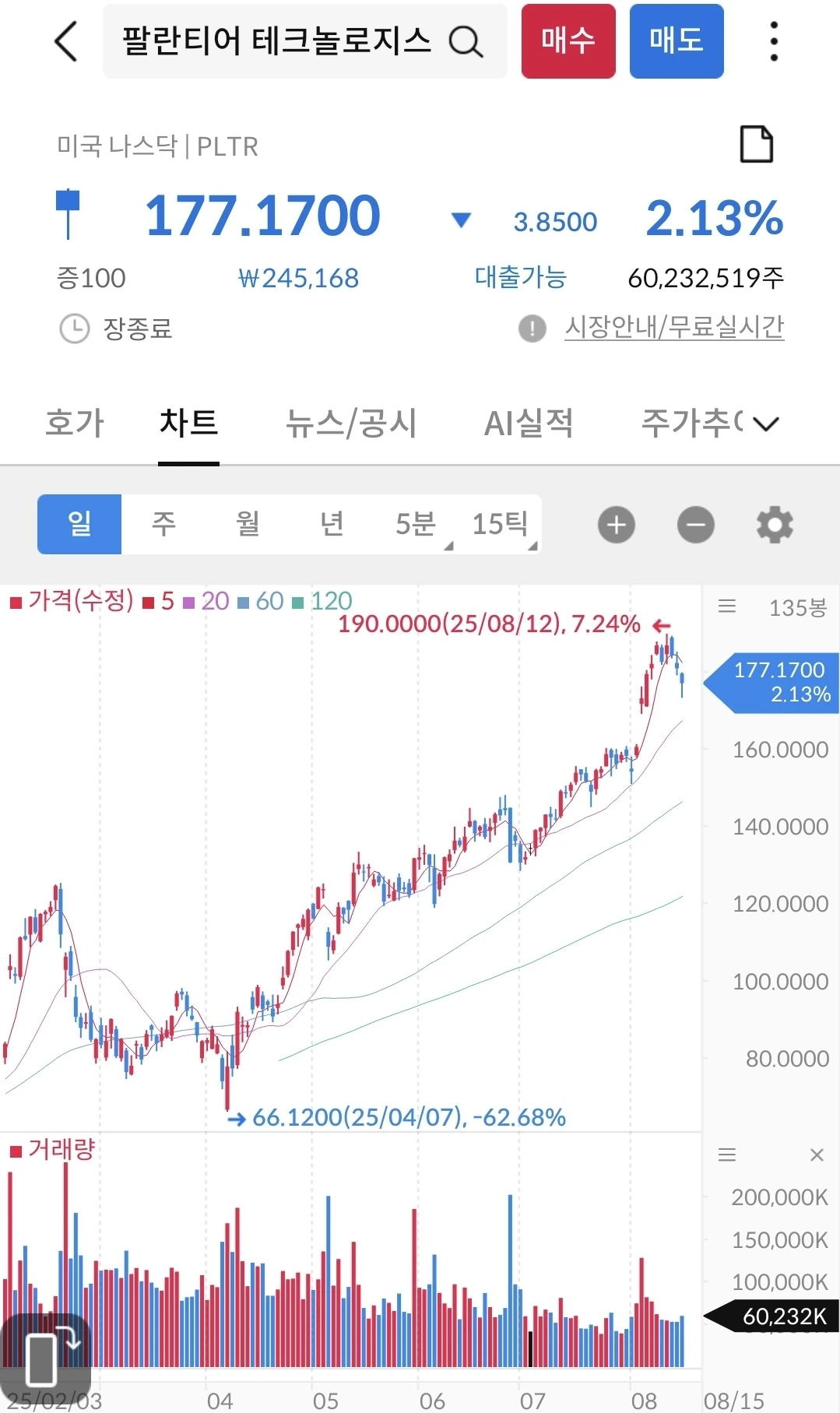 우상향 중이고 지금은 잠시 조정 중이다. 실적 발표 후 190불까지 올라 갔다가 지금은 170불대이다. 등락은 있지만 꾸준히 우상향 할 것으로 보인다.