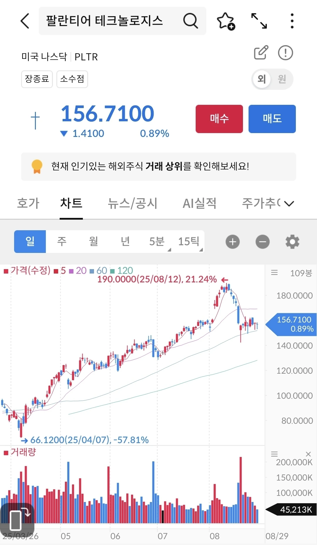 삼성전자와 비교하여 매출은 아주 많이 작은데, 시총은 삼성전자보다 훨씬 크다. 많은 증권사들은 적정주가를 80불에서 100불 사이로 보고 있다. 이런 주식이 190불까지 갔다가 150불이 되었다.