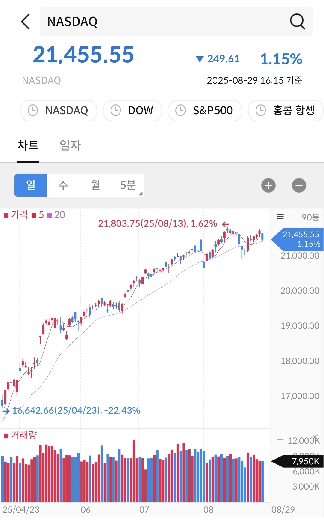나스닥과 동일한 패턴으로 우상향 중이다.