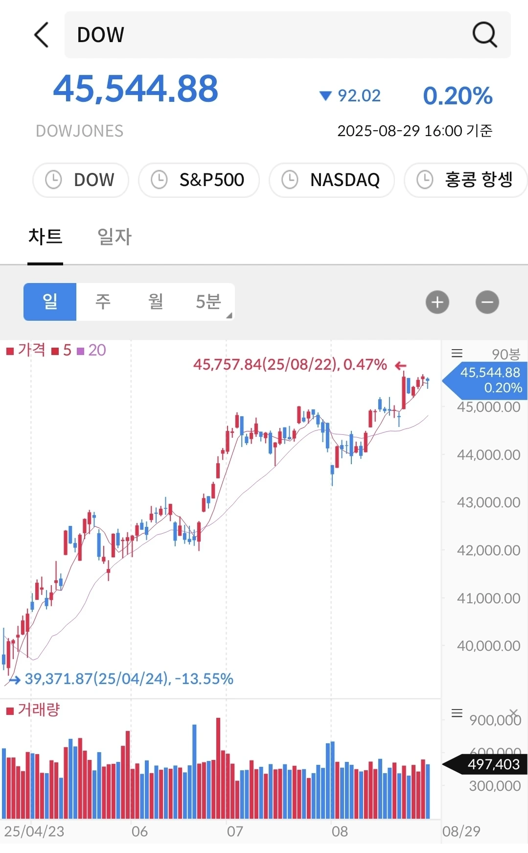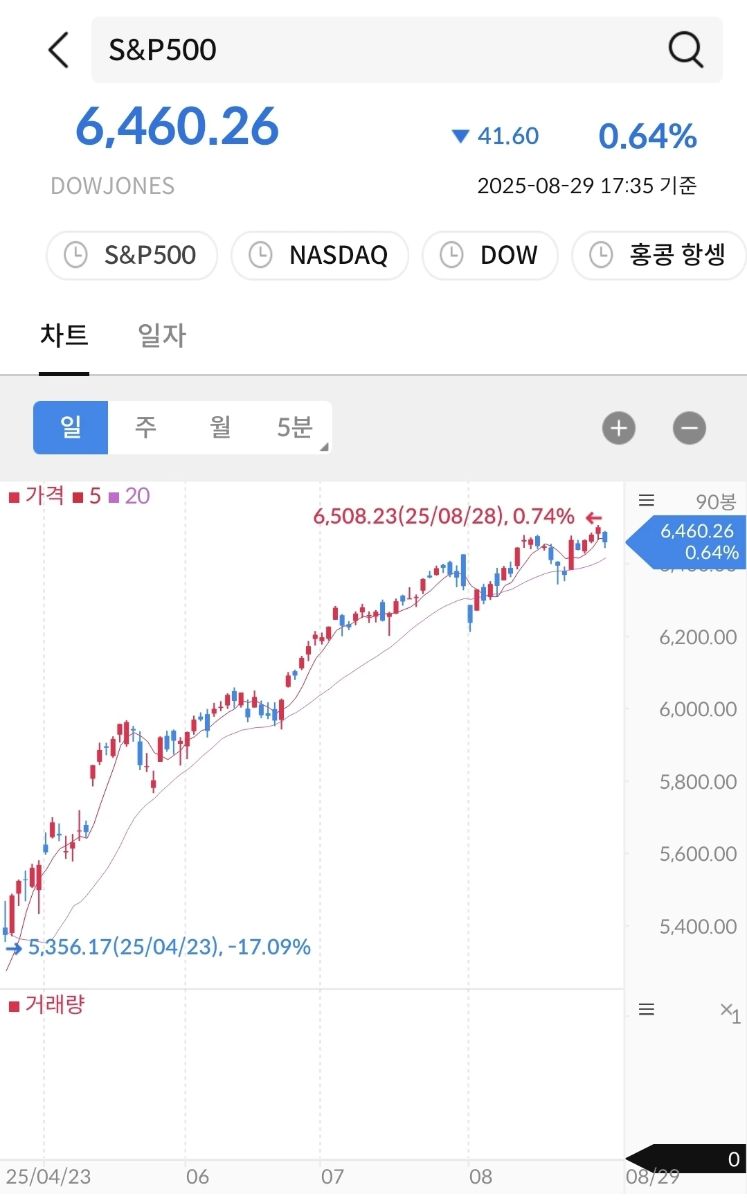 나스닥에 비하면 완만해 보이지만 꾸준히 우상향 중이다.