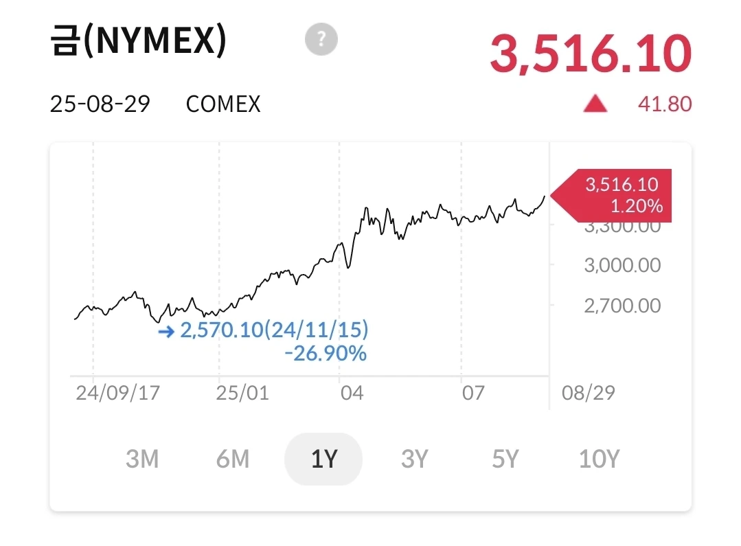 금가격도 등락을 반복하면서 꾸준히 우상향 중이다. 연말까지 3900을 달성할지는 모르겠지만 3600은 넘을 것 같다. 금리인하를 하면 달러약세로 금에 대한 수요가 늘 것으로 보인다.