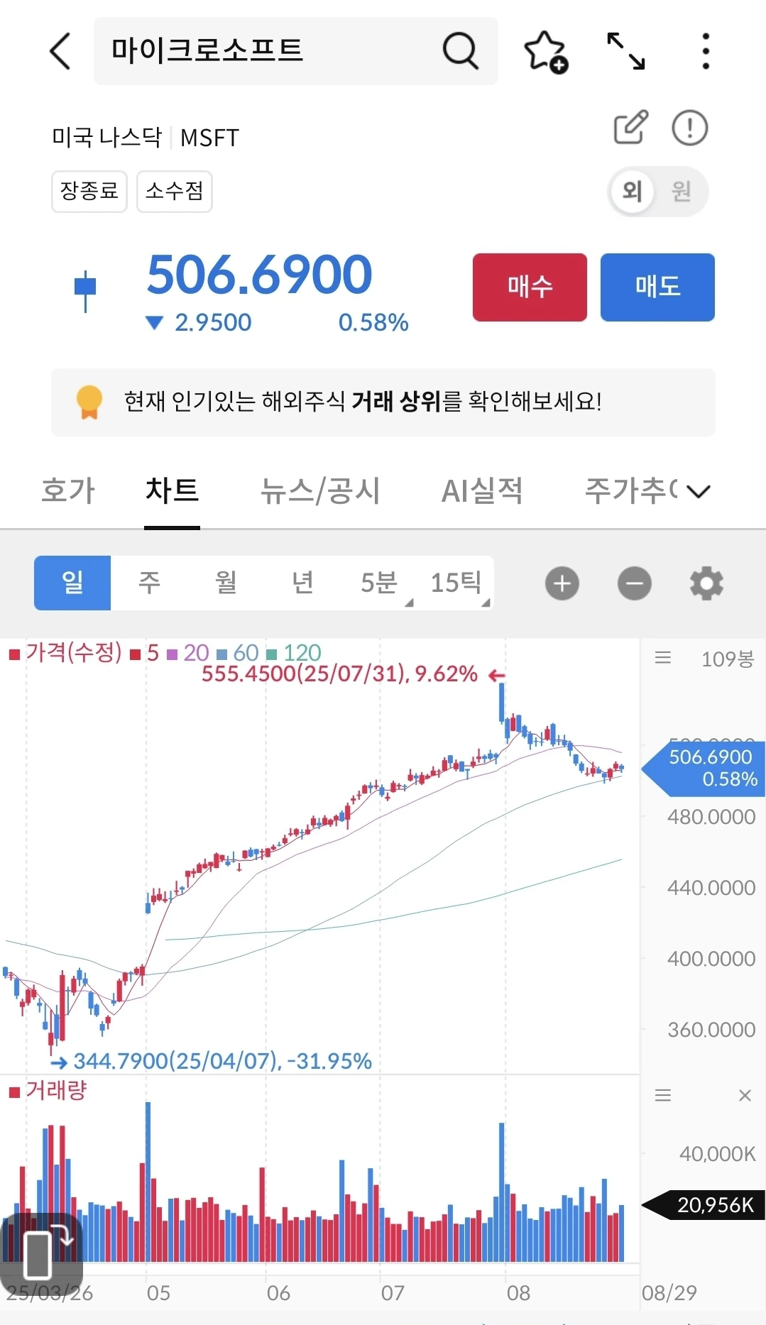아무도 모르는 일이다. 하지만 상승세로 전환된다면 지금이 매수의기회 일 수도 있다. 개인적으로 마소는 매월 무지성 매수로 모아가도 좋은 주식이라 생각한다.