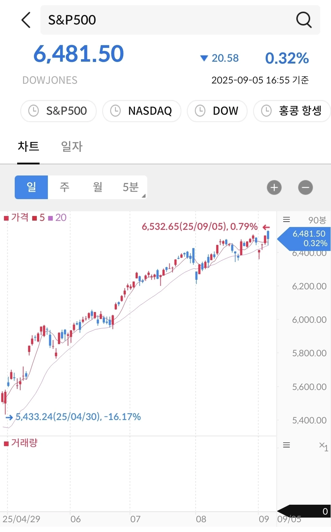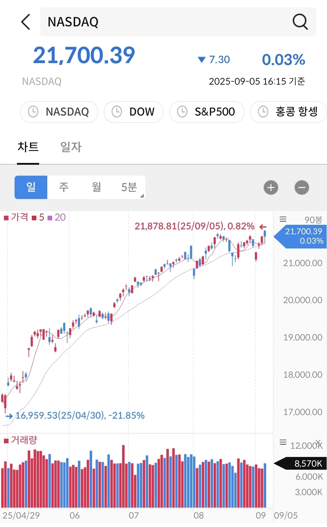 나스닥과 비슷한 패턴이다. 우상향 중이고 지켜 보자.