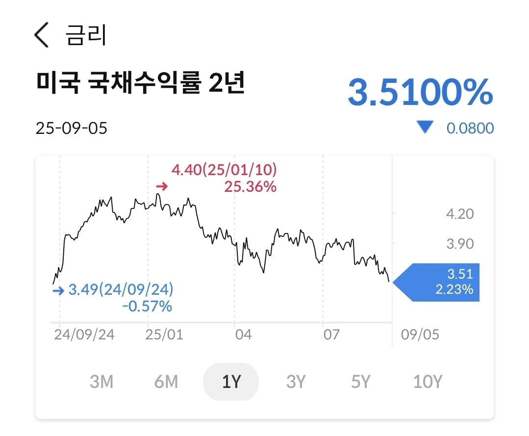 완만히 상승하다가 지금은 하락 중이다. 언제까지 하락할지는 지켜봐야 하는데, 아마도 금리 발표가 나면 반등할 것으로 보인다. 시장의 불확실성이 어느 정도 해소되기를 기다려 보자.