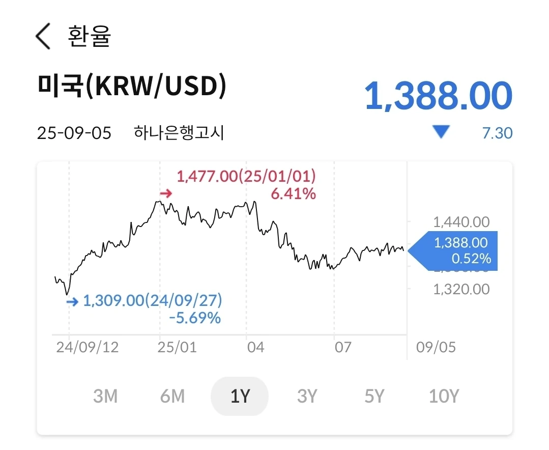 6월부터 지금까지 환율은 1380원에서 1400원 사이에서 등락을 반복 중이다. 금리인하가 되면 약간은 다른 패턴이 나올 수 있다. 지켜보자