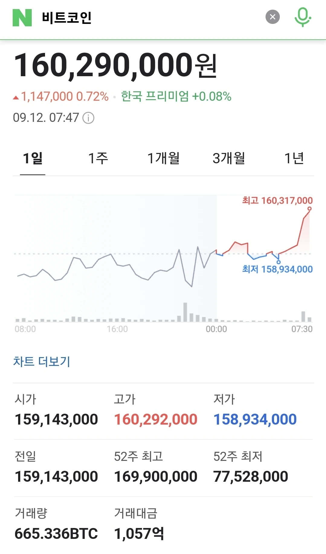 1) 비트코인, 1.23% 오른 1억6110만원