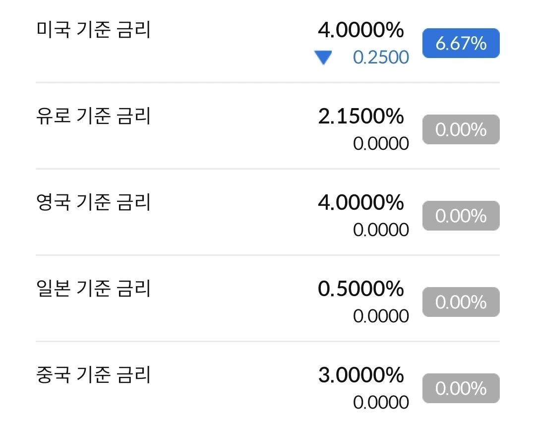 한국의 기준금리는 2.5%라서 더 이상 내릴 여력이 남아 있지 않다. 그에 비해서 미국은 아직도 금리인하를 할 여지가 많이 남아 있다. 그럼에도 불구하고 금리동결을 이야기 하고 있다.