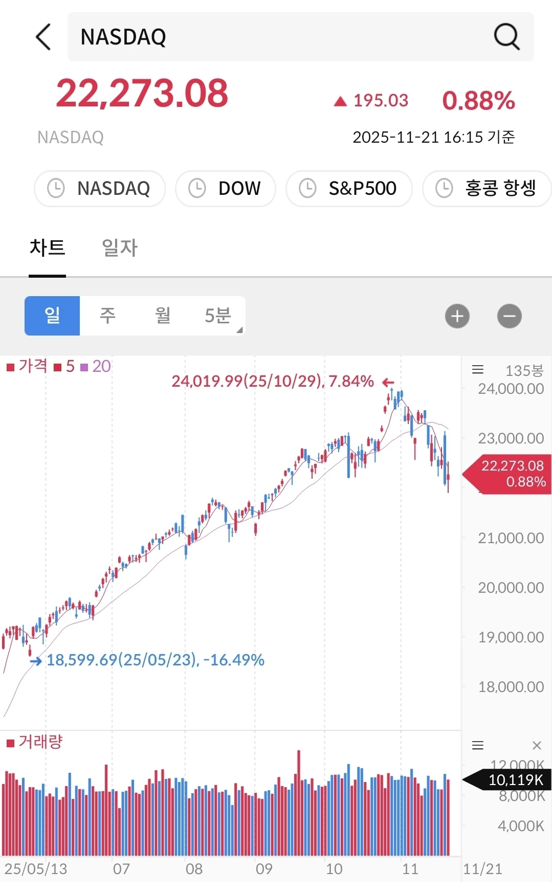 나스닥과 같은 상황이다. 금리를 기다리는 중.