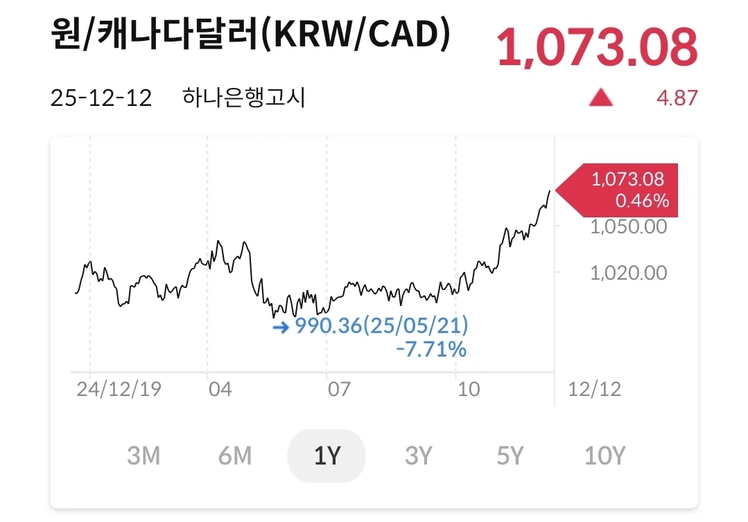 캐나다달러는 최고점을 경신했다. 매월 송금하는 기러기의 마음은 무겁다. 원화가 빨리 강세가 되어야 할텐데.