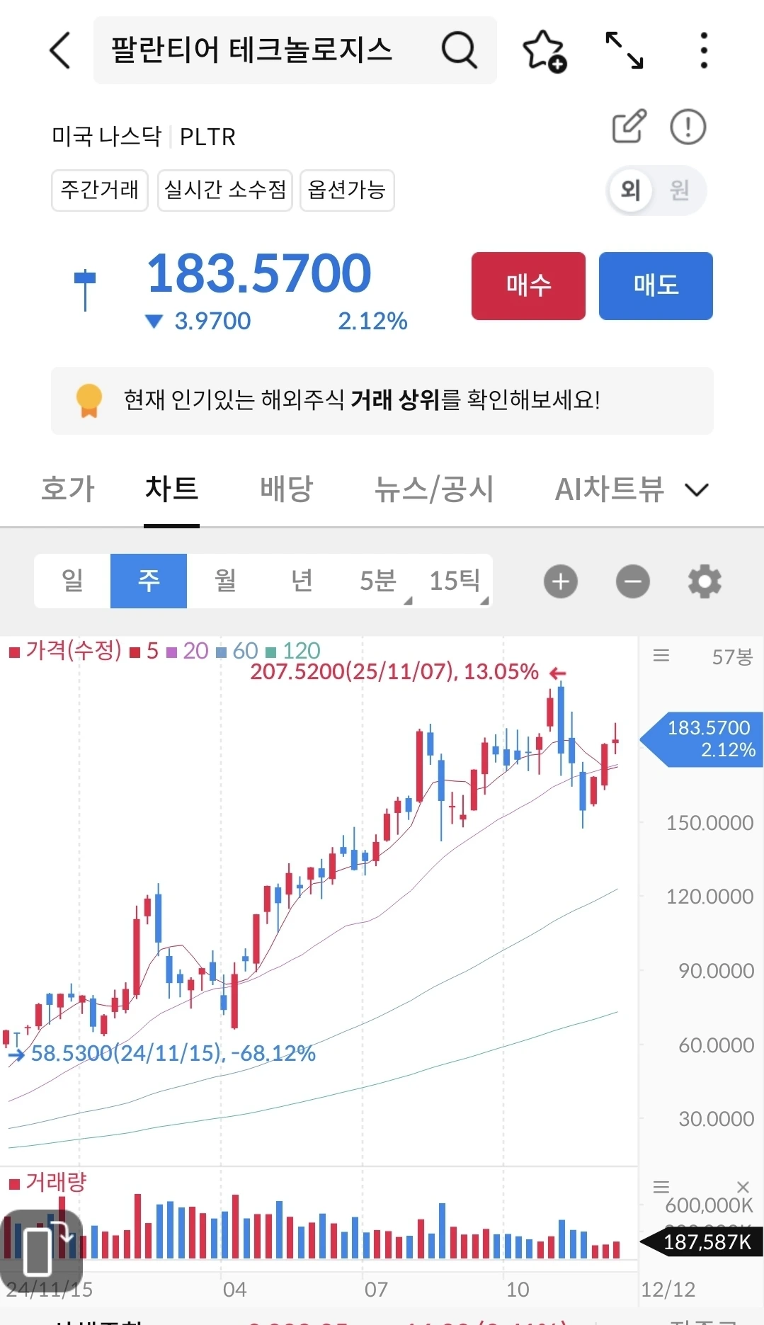 우상향 중이고 이번주에도 올랐다. 꾸준히 오르고 있다.