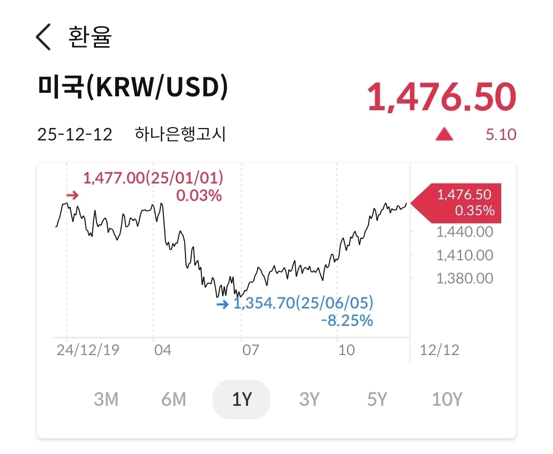 작년 12월 계엄발표 당시 수준이다. 원화 약세가 심각하다. 신문에는 1500원을 넘을거라는 기사도 많다. 달러로 수입하는 제품이 많아서 인플레이션에도 직접적인 영향을 준다.