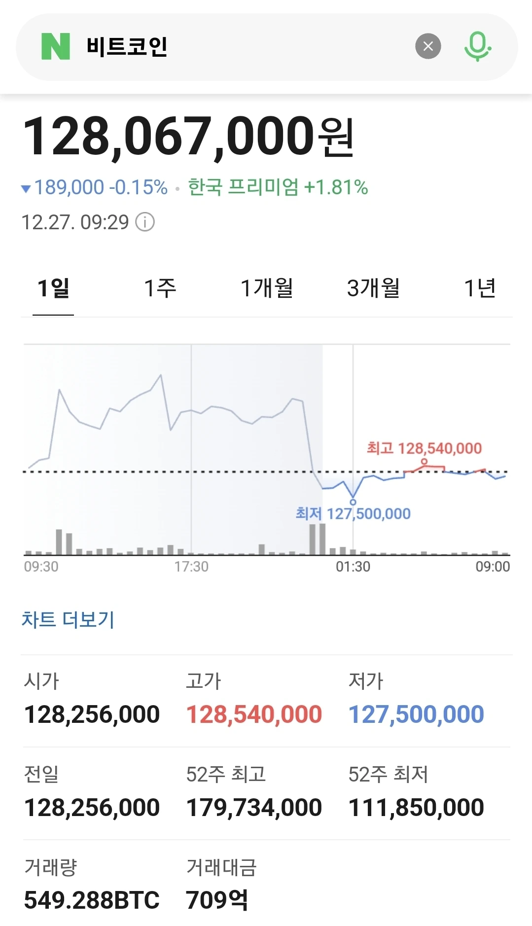 2) 비트코인 1억2800만원선 유지