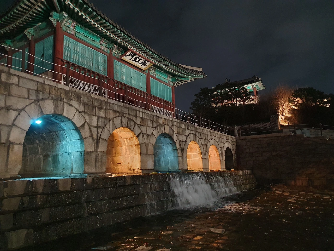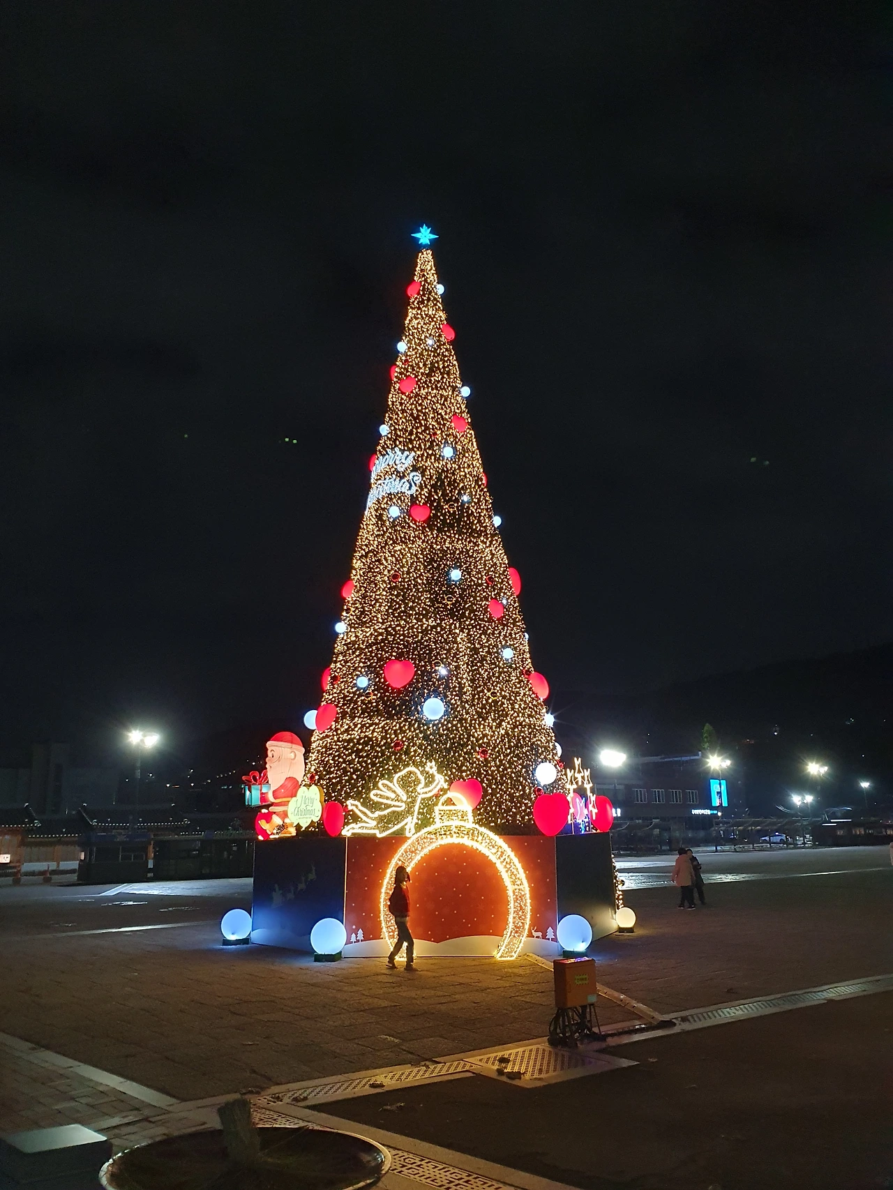 수원 종로에서 화성 행궁 방향으로 나와서 신호등을 기다리는데, 눈 앞에 10미터 높이의 크리스마스 트리에 조명이 켜져 있었다. 낮에 볼 때는 잘 몰랐는데, 이렇게 밤에 보니 은근 예쁘고 아기자기 하다. 크리스마스 트리 맨 위에 있는 파란 색 별은 나에게 뭐가 작은 희망을 주는 듯 하다. 올해 나에게 많은 일이 있었고, 고민도 많았는데, 잠시 별에 맡기고 산책을 했다.
