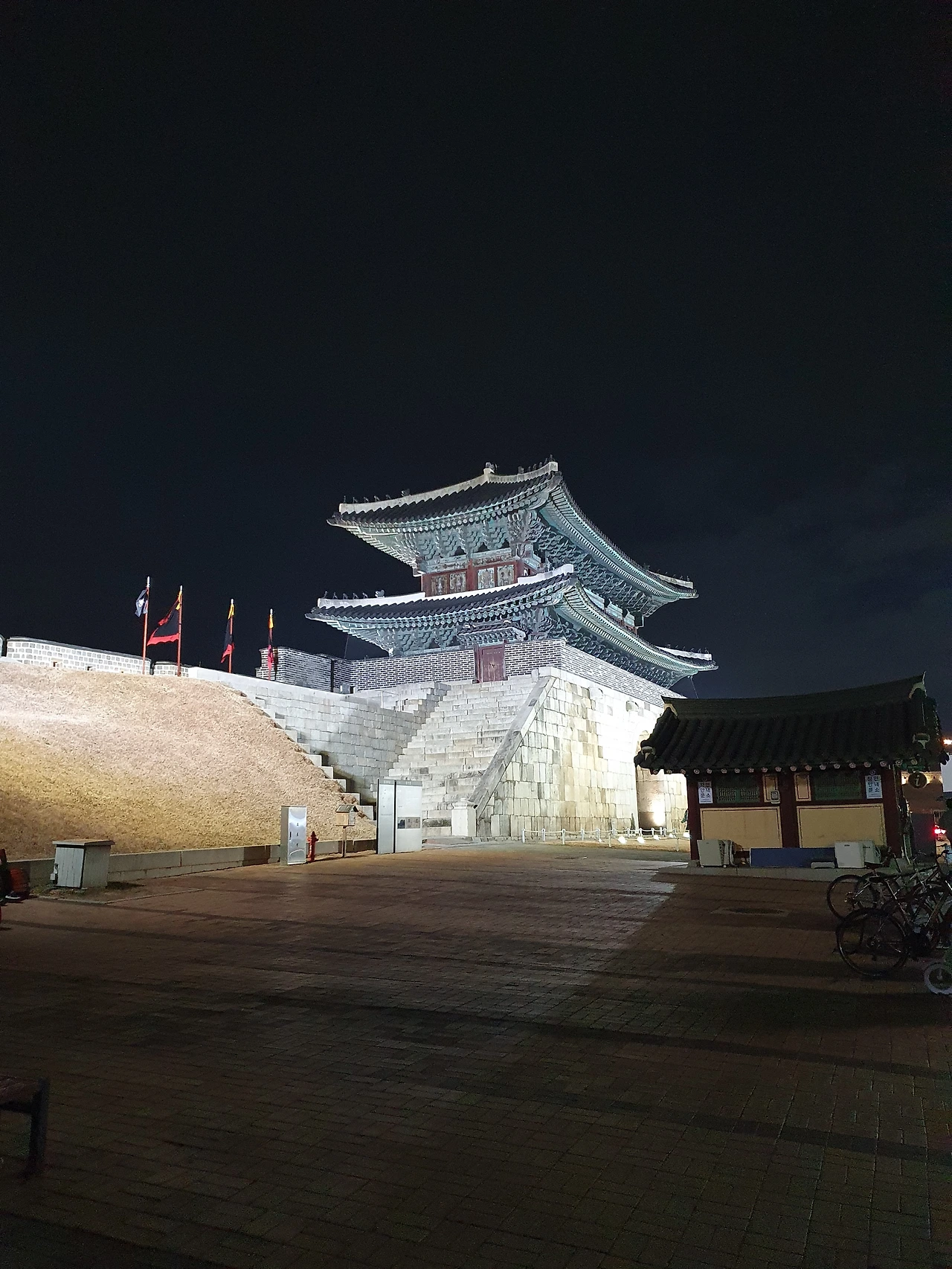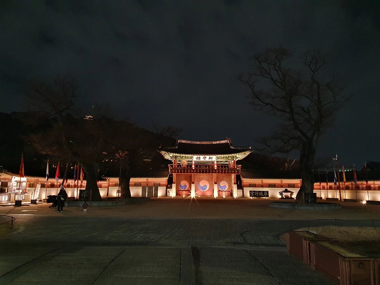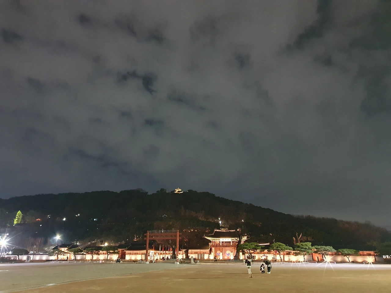 크리스마스 트리 뒤로 화성행궁의 정문이 보였고, 그 뒤로 팔달산 위에 서장대가 보였다. 행궁 앞 광장에는 사람의 왕래가 거의 없어서 조용해서, 지난 주말에 와서 느낀 감정과는 완전 결이 다른 또 다른 느낌이다. 같은 장소 그러나 다른 느낌이다. 내일도 일찍 퇴근하고 와서 운동 삼아 산책을 해야겠다는 생각을 했다. 이런 좋은 인프라가 있는데, 그동안 집에 와서 유투브 보고, 티비 보면서 시간을 킬링하기에 바빴었다.