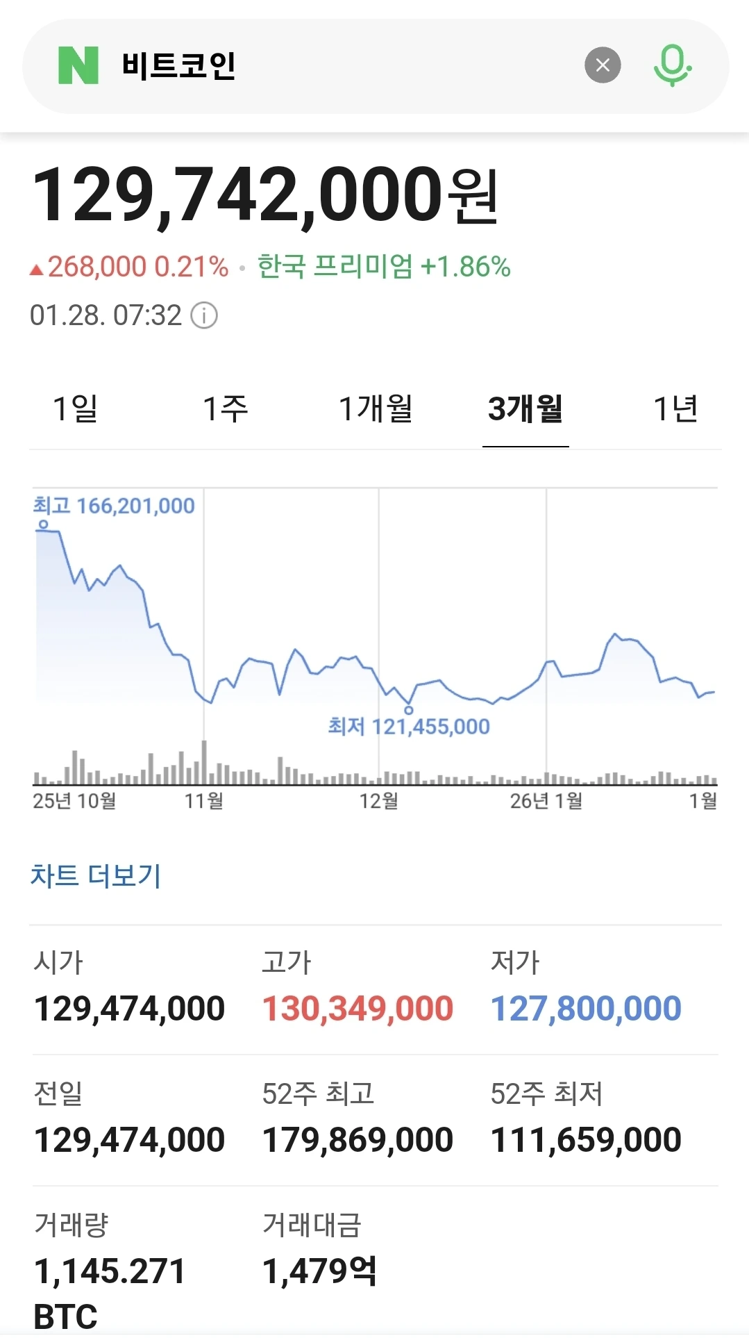 기술주 훈풍에 비트코인 1억3천만원 회복
