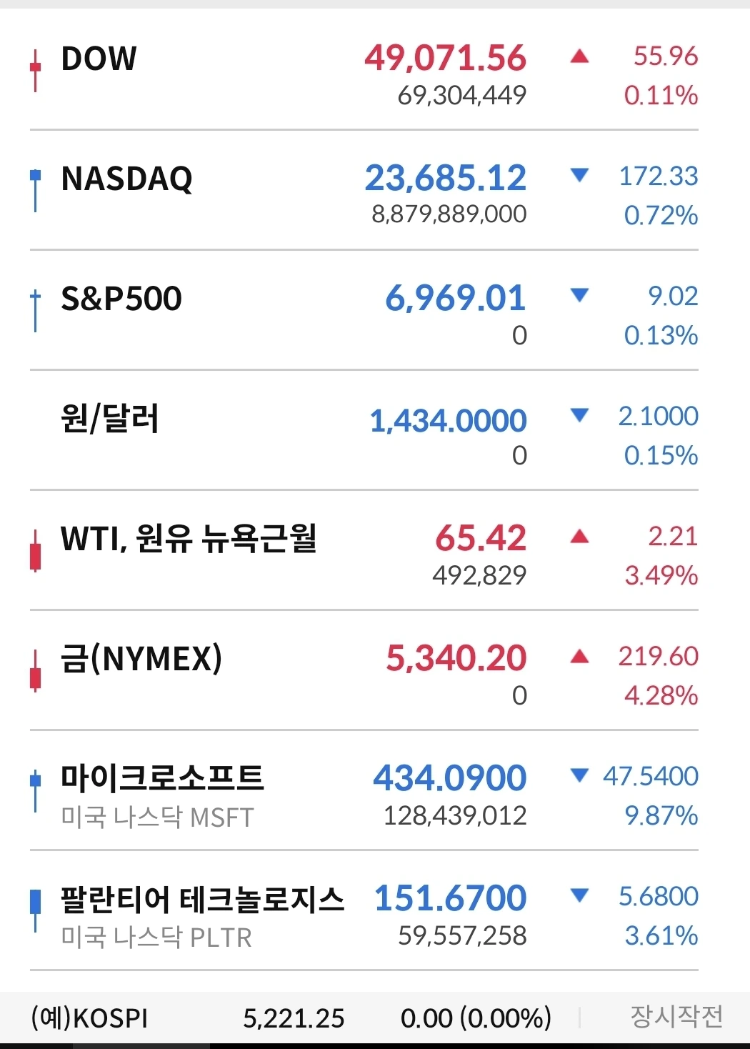 3) 혼조세 마감