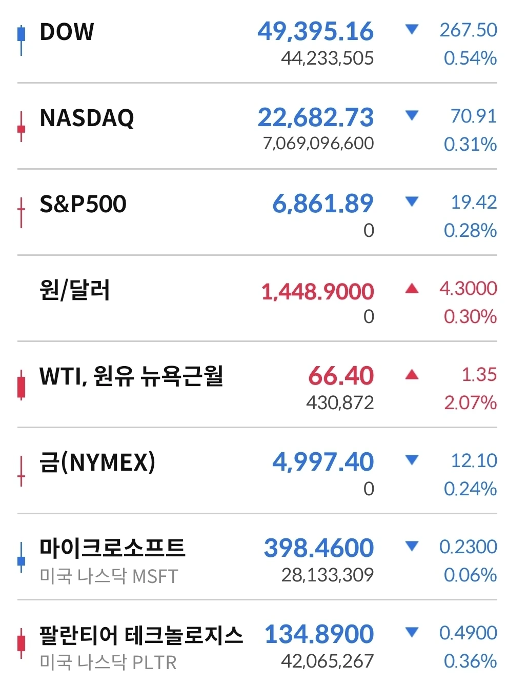일제히 하락 마감