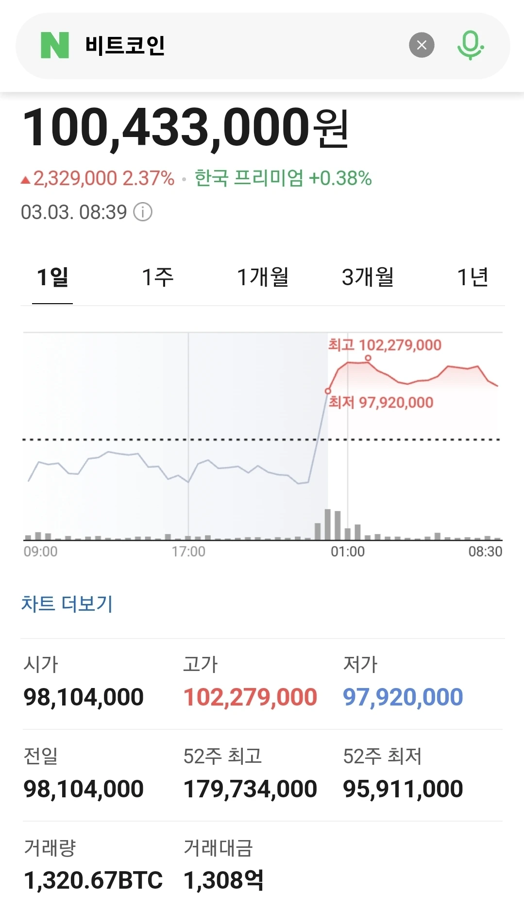 1억 선 회복