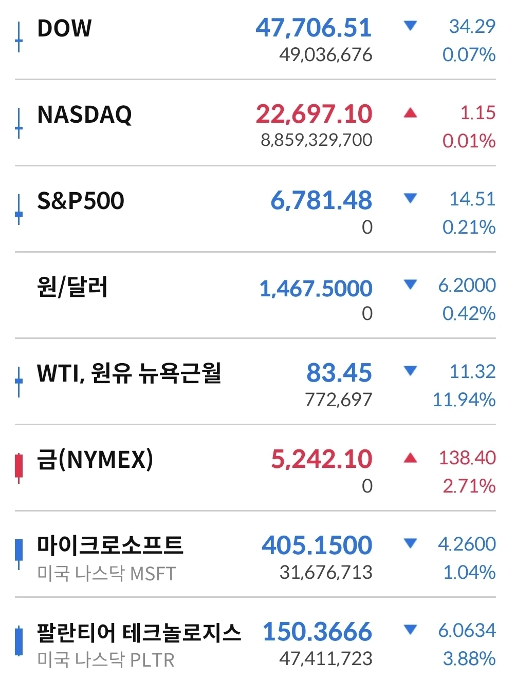2) 다우 0.07% 하락, 나스닥 0.01% 상승