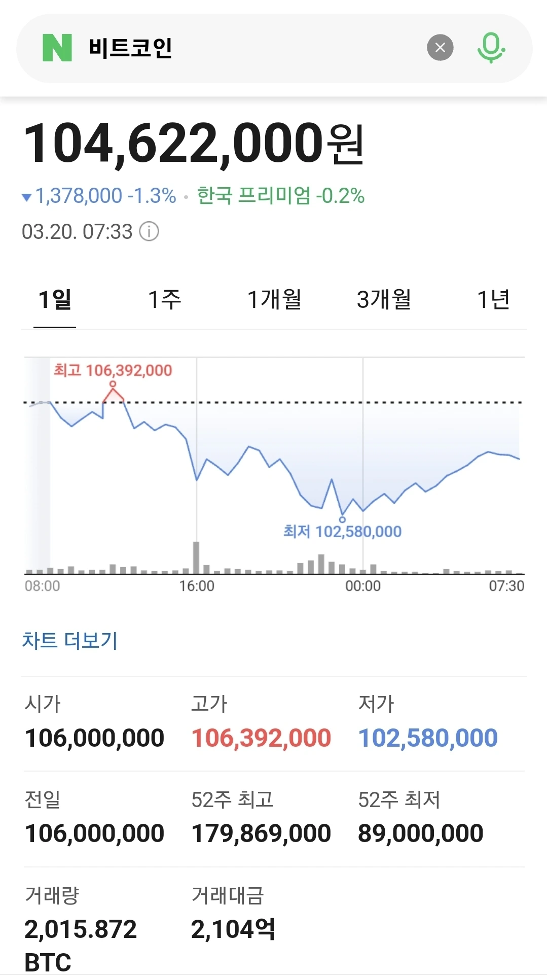 원화 1억원선 횡보