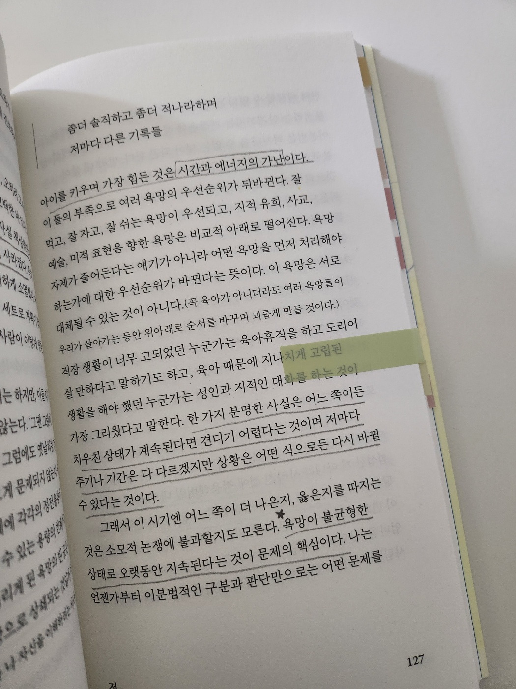 고난과 역경을 극복하여 성공에 이르는 영웅담은 육아에 어울리지 않는다. 육아의 서사는 그리 단순하지 않으며, 단순해서도 안 된다. 그런 맥락에서 일과 육아에 모두 성공했다는 알파 우먼에 대한 기사를 그만 보고 싶다. 아무리 사연을 미화해도 그 삶에 있었을 온갖 고통이 다 읽혀 괴롭다. 사실 내게 가장 필요했던 것은 롤모델도 아니고 타인의 위로도 아니고 스스로와 연대하는 법을 배우는 것이었다. 비록 조금은 자기기만적일지라도 스스로와 연대하고 스스로를 돌보는 마음이 다른 무엇보다 큰 도움이 되었기 때문이다. 지금도 여전히 잘 되지 않고 계속해서 노력이 필요하다. 그래, 모순을 끌어안지 못하는 것에 대해서도 나 자신을 괴롭히지 말자. 안 그래도 (엄마라는 이유로) 비난받을 일투성이인 세상에서 나까지 나를 비난한다면 어찌 견대겠는가. 누군가를 설득하거나, 무엇을 권유하기 위해 쓴 글이 아닌데도 거의 십계명 수준으로 하고 싶었던 말을 쏟아낸 게 아닌가 싶다. 다소 민망해진 마음을 추스르기 위해 이 글에서도 절대 해법을 찾으려 애쓰지 말아달라는 당부를 덧붙인다. 무엇보다 자신에게 집중하고 자신의 이야기를 더 많이 만드시길. 바람을 담아.