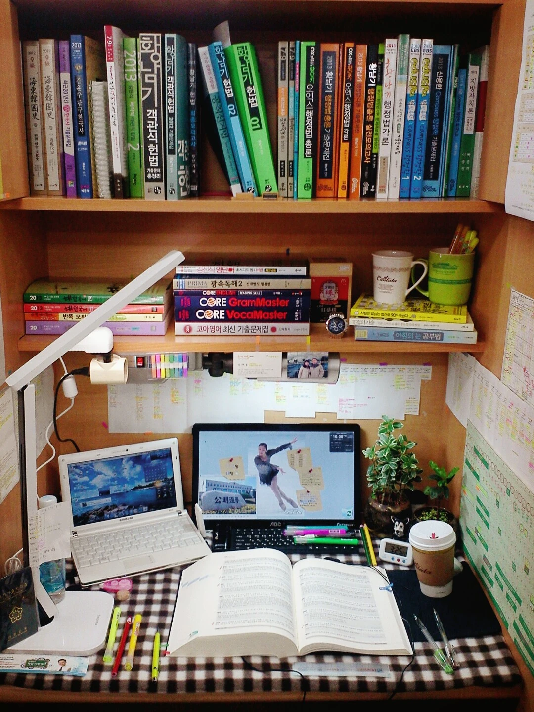 명보독서실 내 좌석의 풍경. 자세히 보면 화분도 있다. : )