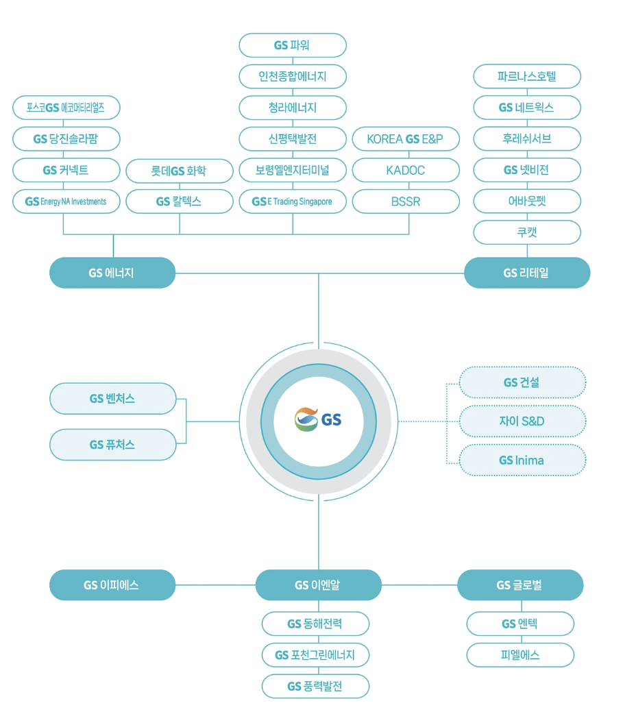 하단에 GS 지주사를 좀 더 편하게 알 수 있도록 GS계열사 현황에 대한 이미지를 첨부했습니다.