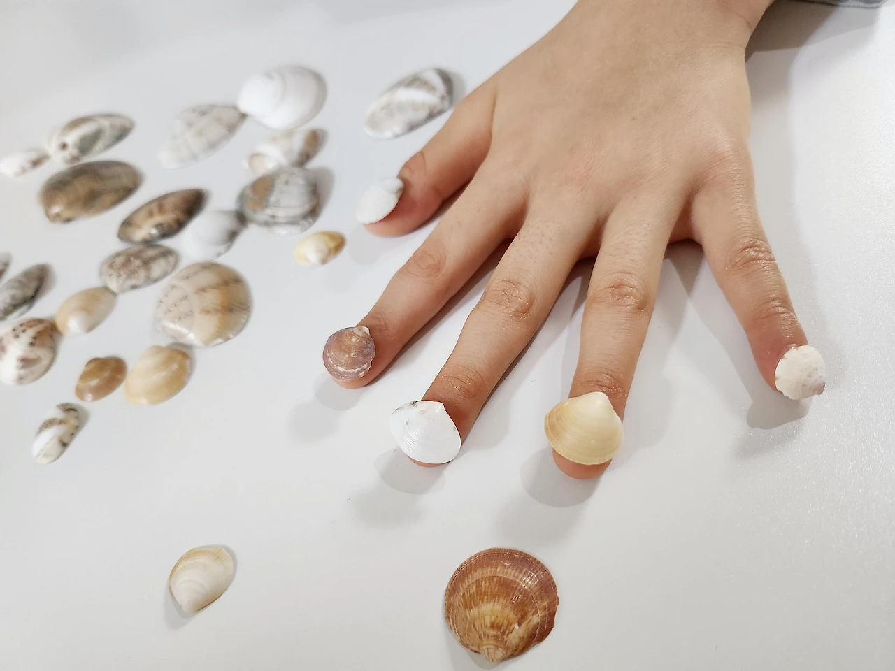 주워온 조개껍데기들을 깨끗이 씻었더니 진짜 보물같이 반짝거렸다