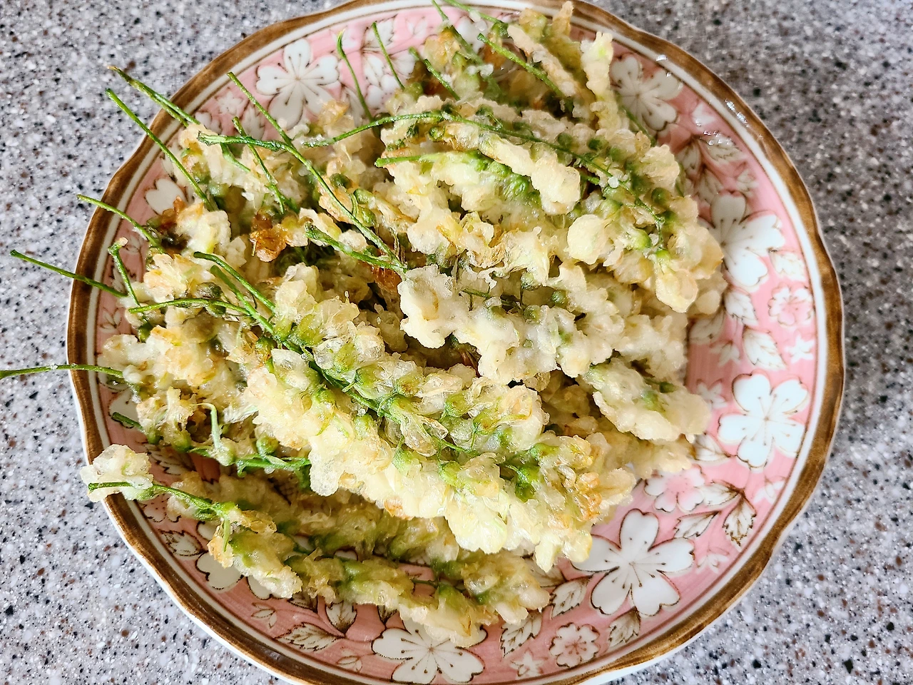 꽃잎이 여려서 튀김옷이 두꺼우면 맛이 없다.