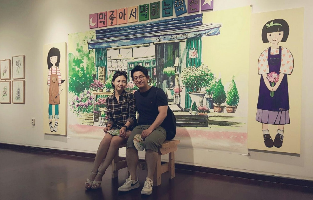 그날 우리는 한여름, 언덕길이 예쁜 카페엘 갔다. 걷는 걸 좋아했던 우리는 자연이 좋은 언덕길을 걸어 올랐고, 땀이 송송 맺혔다. 커피도 맛있었고, 그림들도 너무 예뻐 한참을 둘러보며 한여름날의 여유를 만끽하고 있었다.