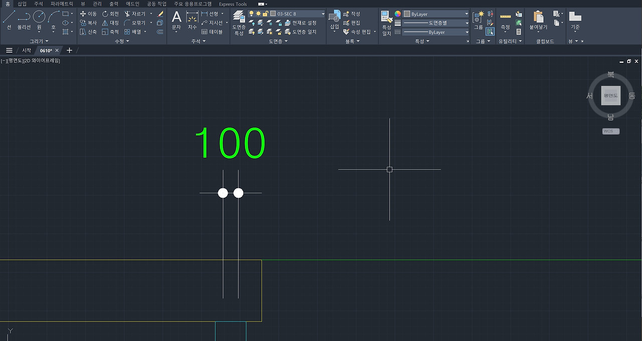 캐드 과제를 하다가 치수를 재는데 나타난 숫자 100.