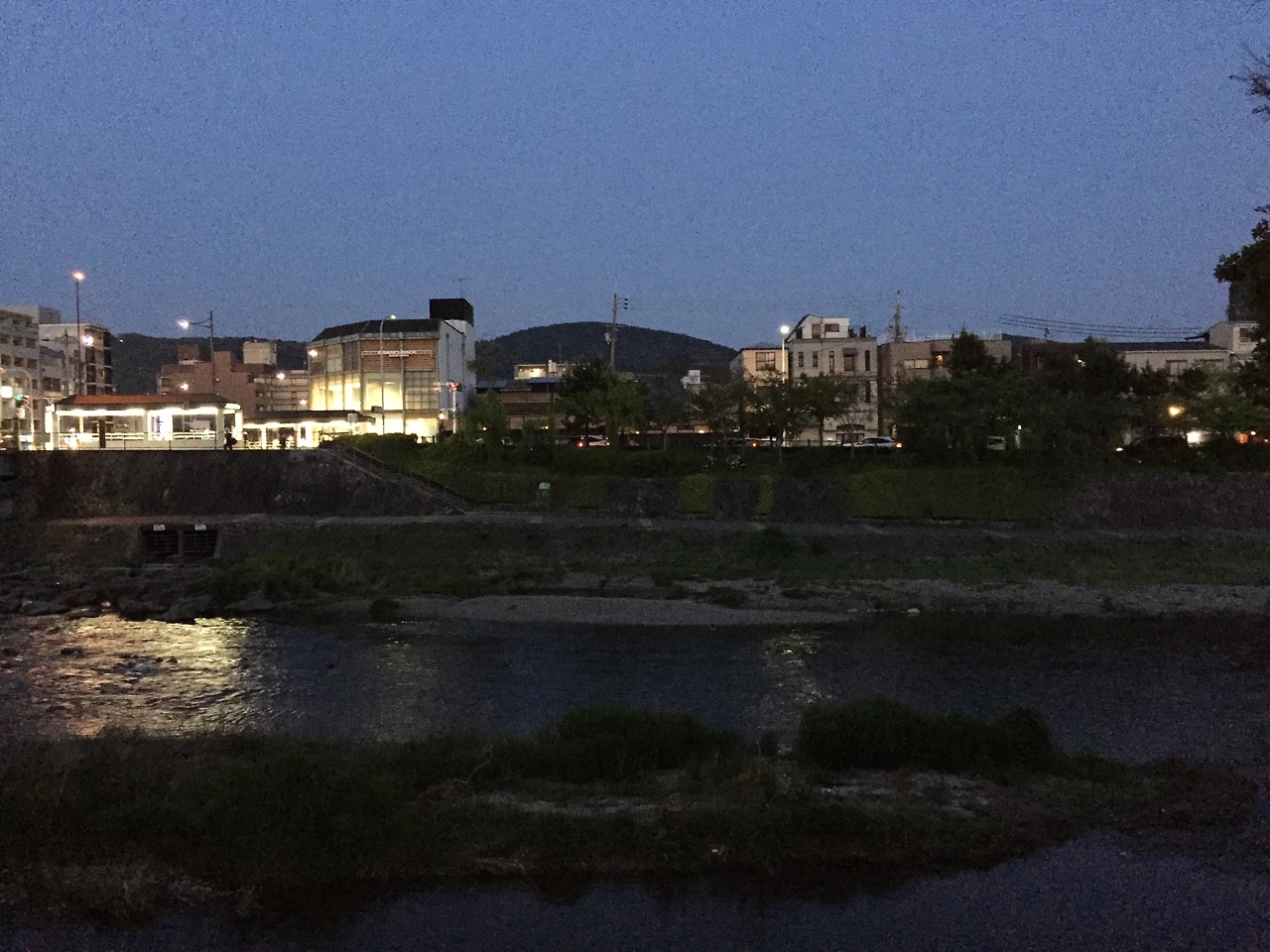 저녁에서 밤으로 넘어가는 탄천길을 걷다 문득 교토가 떠올랐다. 카모강이 보이는 커피숍에서 본 풍경이 그랬다. 4월이었고, 일곱 시를 넘긴 시간이었다. 열린 창문으로 부드럽고 선선한 강바람이 불었고 하늘은 코발트블루빛에서 채도를 더하고 있었다. 아직 가로등 불빛이 들어오지 않아 산과 나무는 서서히 형태만 드러났고, 징검다리로 건널 수 있는 반대쪽으로는 자전거를 탄 사람들, 걷고 달리는 사람들이 보였다. 위쪽 큰길엔 버스와 자동차에서 새어 나오는 불빛이 서두르듯 스쳐가고 있었다. 저녁에서 밤으로 이어질 때 모든 사물의 실루엣이 선명해 보일 때가 있다. 그래서 환한 낮에는 일부러 보지 않았던 풍경도 밤이 될 때는 눈에 담고 싶어진다. 십수 년을 다닌 탄천 길인데 전혀 다른 곳의 일상적 풍경이 겹쳐진 게 신기했다. 기억이 빛을 발하는 순간이었다.