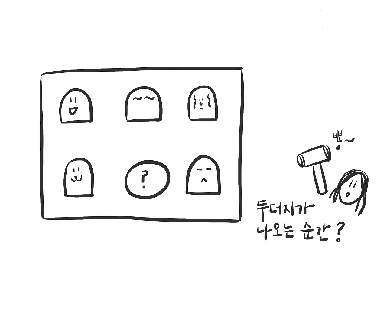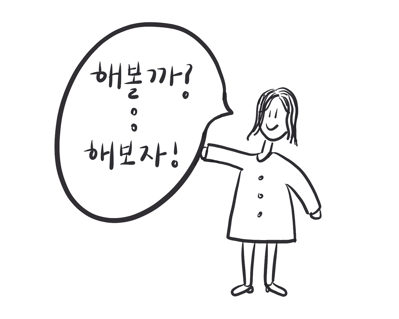 인생의 여러 가지 선택을 두더지 잡기 놀이라고 생각해보자. 우리는 언제 어느 구멍에서 튀어나올지 모를 기회를 잡기 위해 뿅망치를 들고 있다. 기다리는 사람, 나오기도 전에 두드리는 사람, 두더지가 나와도 칠 생각이 없는 사람 등 같은 뿅망치를 들고 있어도 방식은 저마다 다를 것이다. 어찌 됐든 인생은 한 번이니 게임으로 쳐도 딱 한 판이다. 기왕이면 뿅망치를 다부지게 잡고 두더지가 나올 때 신나게 두드리면 될 일이다. ‘해볼까’ 말고 ‘해보자!’의 마음으로.